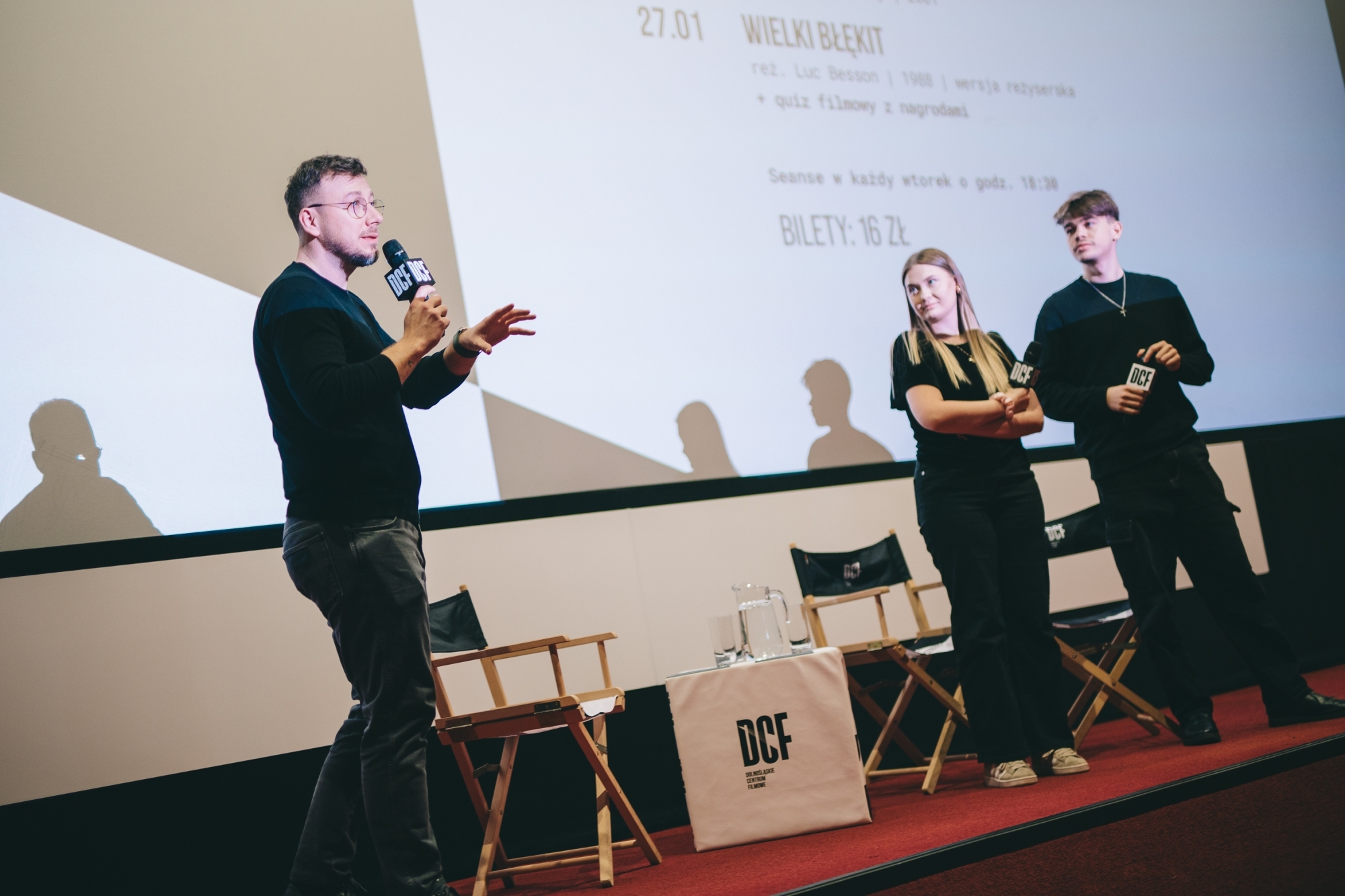 Centralnym punktem wieczoru była dyskusja poświęcona psychologicznym mechanizmom relacji ofiara–oprawca, którą poprowadził dr Aleksander Korchut (UD DSW). W rozmowę aktywnie włączyła się publiczność – zarówno stali bywalcy DKF-u, jak i licznie obecni studenci uczelni, co nadało spotkaniu wyjątkową dynamikę. Inauguracja potwierdziła ideę stojącą za nowym cyklem: kino jako punkt wyjścia do wartościowej wymiany myśli i pogłębionej analizy.