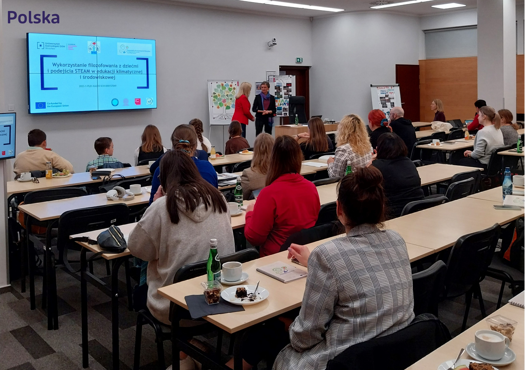 The University of Lower Silesia and Prof. S. Tołpa Primary School No. 90 concluded the project with an event entitled “The use of Philosophy for Children and the STEAM approach in climate and environmental education,” aimed at primary school teachers and other educators. We presented the educational materials developed during the project, and the partner school team, including students, talked about the social club activities they had conducted. We also organised an exhibition featuring documentation from the social clubs, which generated considerable interest. Participants listened to a lecture by Kamil Śliwowski, an expert in STEAM and digital competencies, and participated in workshops on philosophical inquiry, sustainable development, and the future of education. The event was complemented by a Climate Fresk Quiz workshop led by Małgorzata Słowińska from the Parents for Climate movement.
