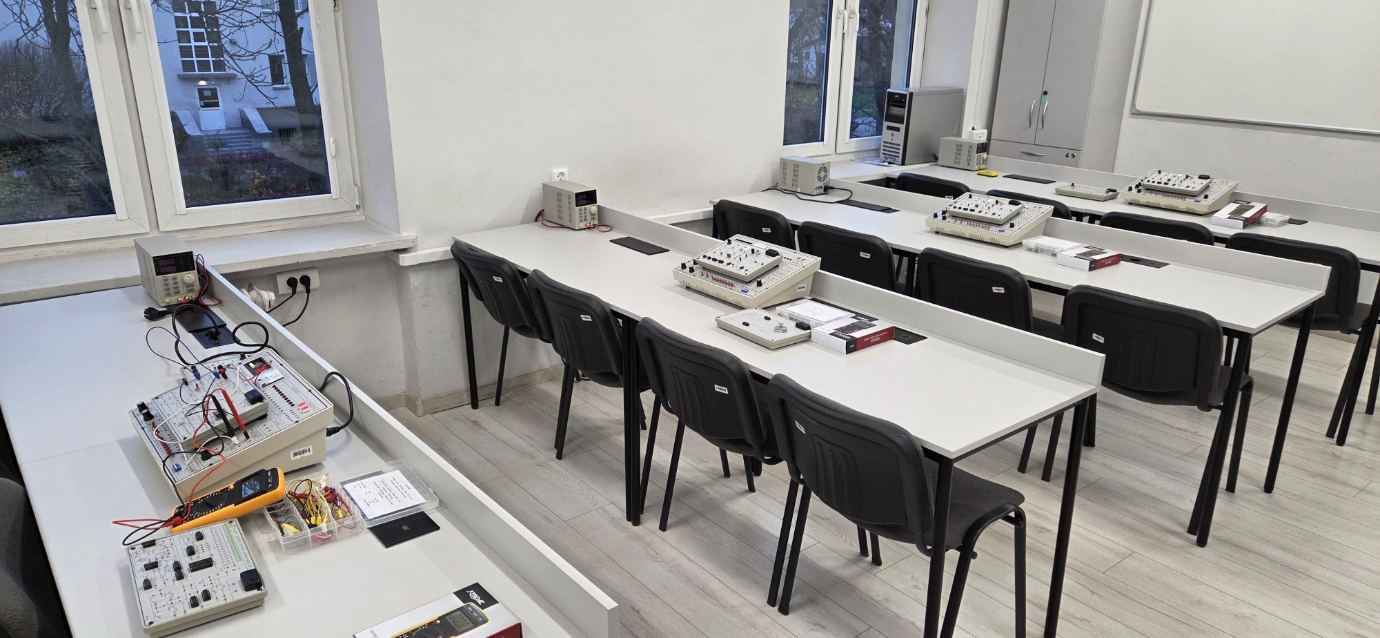 Wyposażenie: laptopy, zestawy do tworzenia oraz badania obwodów elektrycznych, elektronicznych i cyfrowych, mierniki, zasilacze, generatory, wzmacniacze operacyjne, kombinacyjne/sekwencyjne układy logiczne, 32 i 64-bitowe mikrokontrolery i mikroprocesory z architekturami ARM i x86.